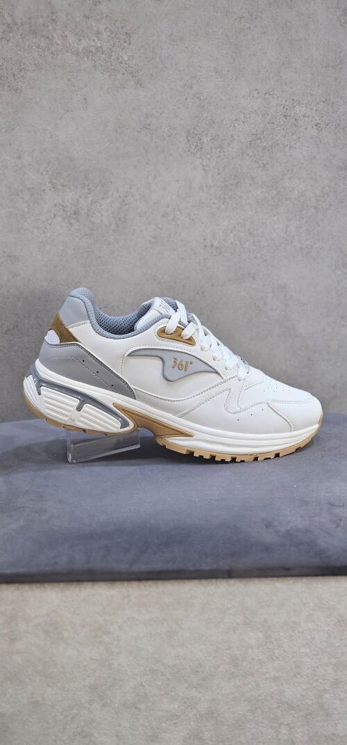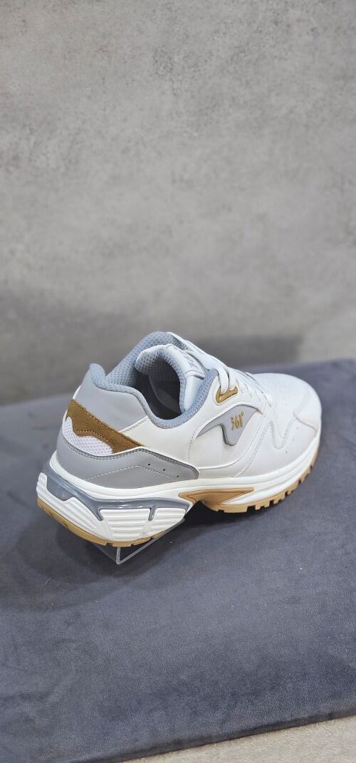 وجود کفی طبی باعث قرارگیری صحیح پا شده و از خستگی زودرس جلوگیری میکند. رنگ سفید، طوسی آن، ظاهری شیک و کاربردی ایجاد کرده که بهراحتی با استایلهای اسپرت و روزمره هماهنگ میشود.